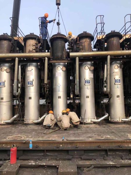 该项目主体为新建上升管高效换热系统,配置110套上升管换热器,替代原上升管上、下管节。受限于生产影响,该工程只能在生产单位指定时间内每天完成4套上升管的更换,给项目部的劳动力资源及机械资源部署带来了极大的不确定性。为此,项目部制定了详细的施工作业计划,确保每天保质保量完成4套上升管更换。目前接近年关岁尾,现场安全管理形式严峻,施工过程中,项目部安排安全管理人员,全程旁站监督,确保安全管理可控。在项目部全体人员的共同努力下,经过连续28天的施工作业,顺利完成110套上升管道更换工作。