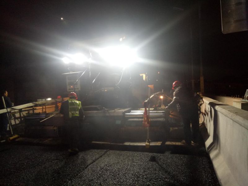 12月18日晚,由交通市政公司承建的贵港市高架环路系统工程项目在克服重重困难下,如期进行沥青试验段施工。目前,贵港环路现浇箱梁及钢箱梁全部完成,即将进入大面积沥青路面施工阶段,为完成年度目标打下基础。