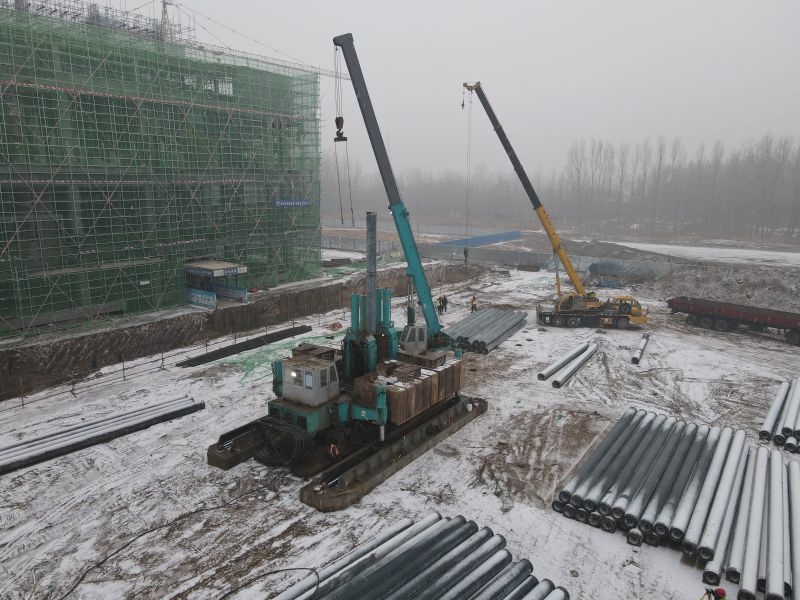 中国电信京津冀大数据项目自2020年12月25日份开工以来,按照“起步就是冲刺,开局即是决战”的要求,坚持发扬“一天也不耽误、一天也不懈怠”的中冶精神,以最快速度形成作业条件。项目施工中遇到了极端气温近零下二十度、疫情反弹、人员急于返乡等不利因素的影响,项目部精心组织,积极疏导人员情绪,确保后勤保障,组织8个班组人员、8台潜水钻、1台静压机全天24小时作业不停歇,历经39天的紧张建设,完成了长为44米、桩径分别为700毫米和800毫米的灌注桩970根、桩径500毫米的管桩272根。