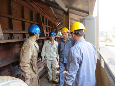 2012年9月15日,五冶集团上海有限公司党委副书记、副总经理薛志群莅临检修京唐分公司,深入曹妃甸全流程年修现场,实地检查指导工作。检修公司副经理于学民及分公司经理陪同检查。
