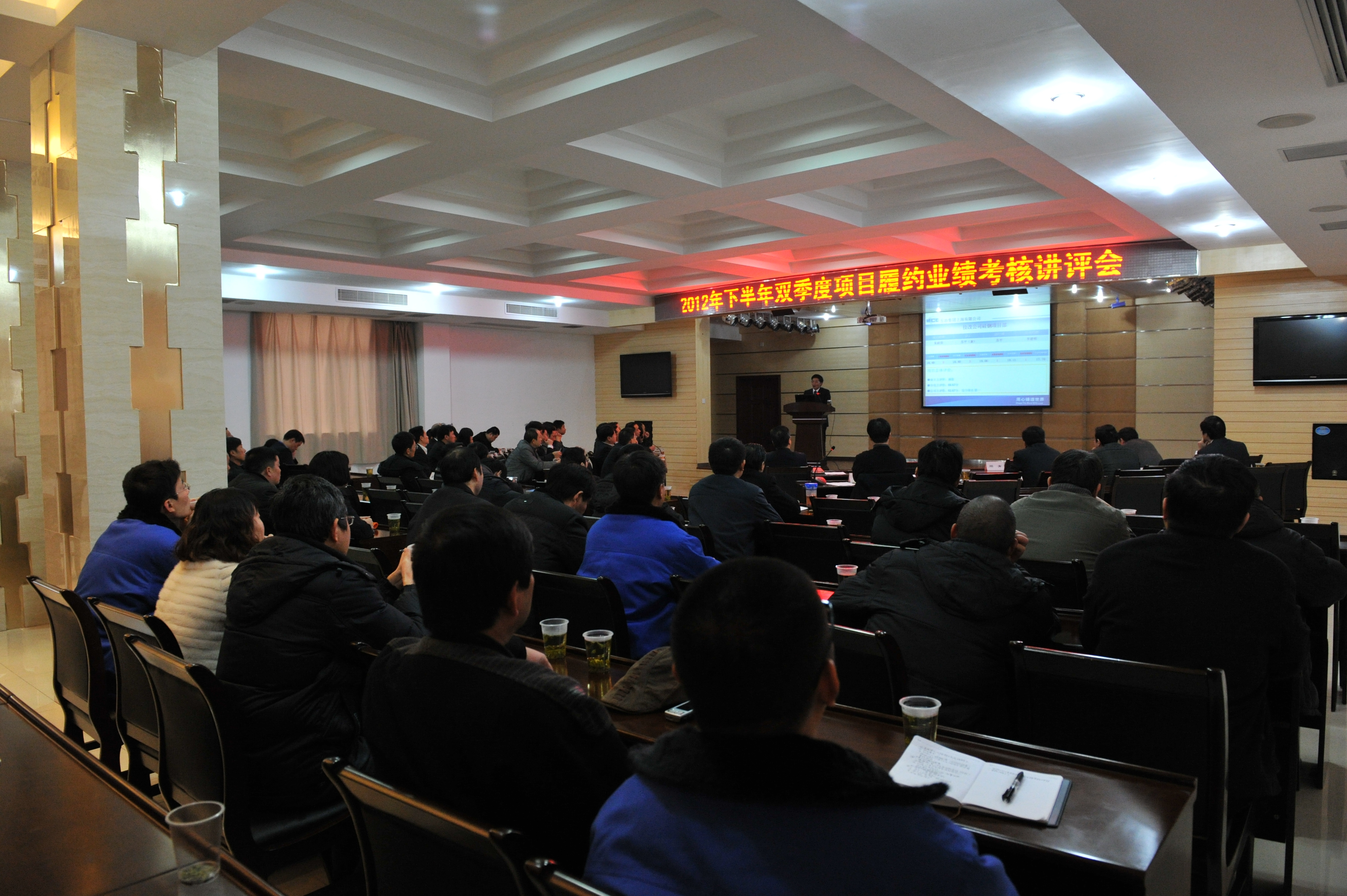 2月6日下午,五冶集团上海有限公司 2012年下半年项目合同履约业绩考核讲评会在科技楼六楼多功能厅召开,公司领导、相关部门、各二级公司、直属项目经理部、接受考核的项目经理部等参加了会议。