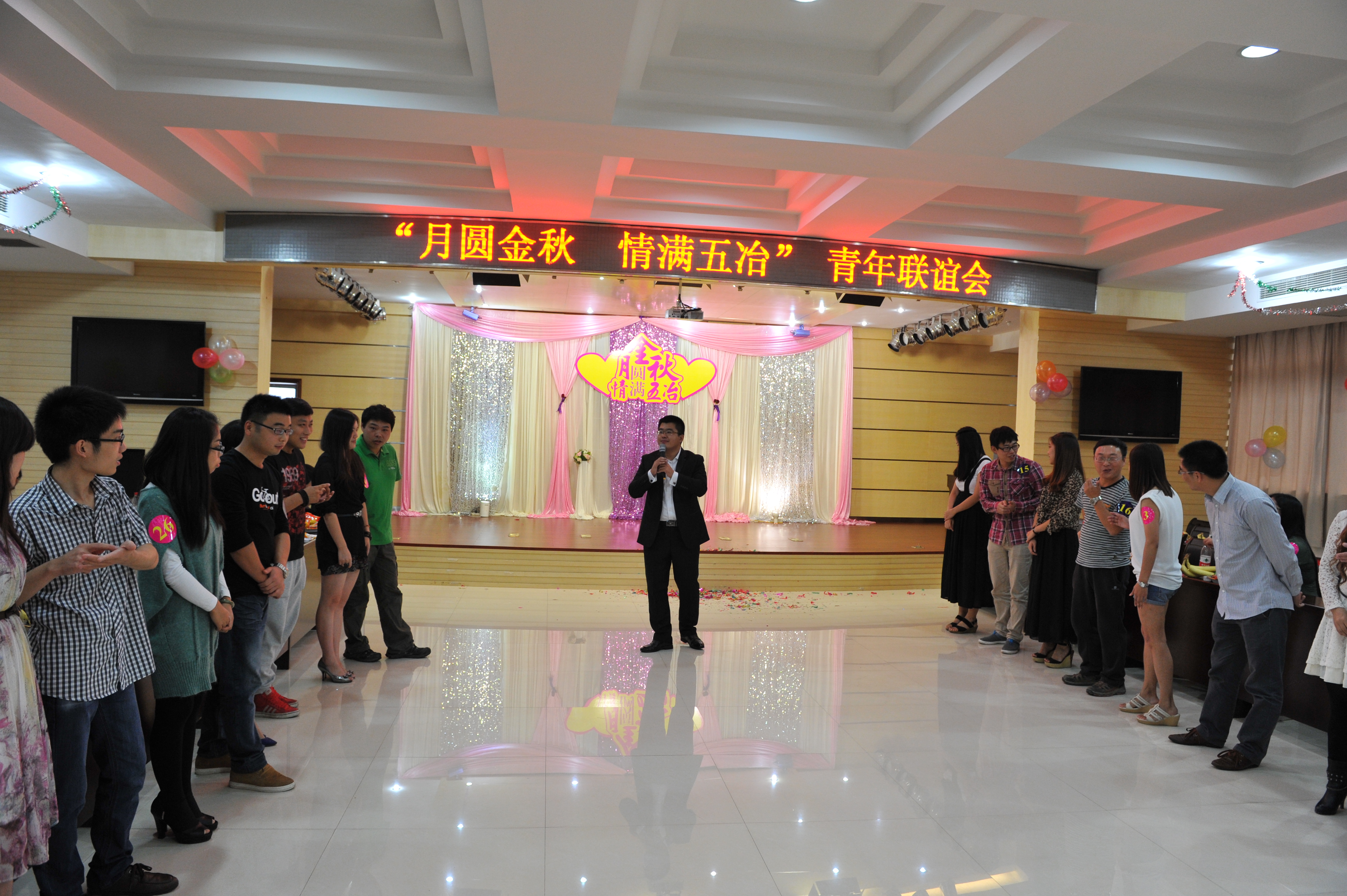 为丰富上海有限公司单身青年员工的业余文化生活,加强公司单身青年员工与中冶及其他外单位单身青年之间的交流与联系,9月28日,五冶集团上海有限公司团委组织开展了“月圆金秋 情满五冶”的青年联谊活动。公司机关、各二级公司及项目部的单身青年员工与来自中冶兄弟单位、卓弈培训咨询有限公司等单位的女嘉宾近50人共聚一堂,畅叙友情,积极互动。