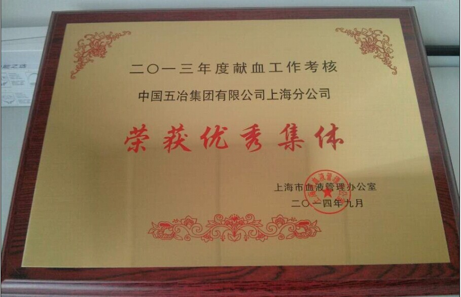 作为中冶集团隶属在沪各企业当中唯一两度获奖的单位,该公司得到了上海市、区血液管理办公室及中冶红十字会等上级部门的充分肯定,有效的履行了该单位作为上海百强企业应尽的社会义务。据统计,从2002到2014年12年间,该公司累计献血2376人次,献血量达475200毫升。