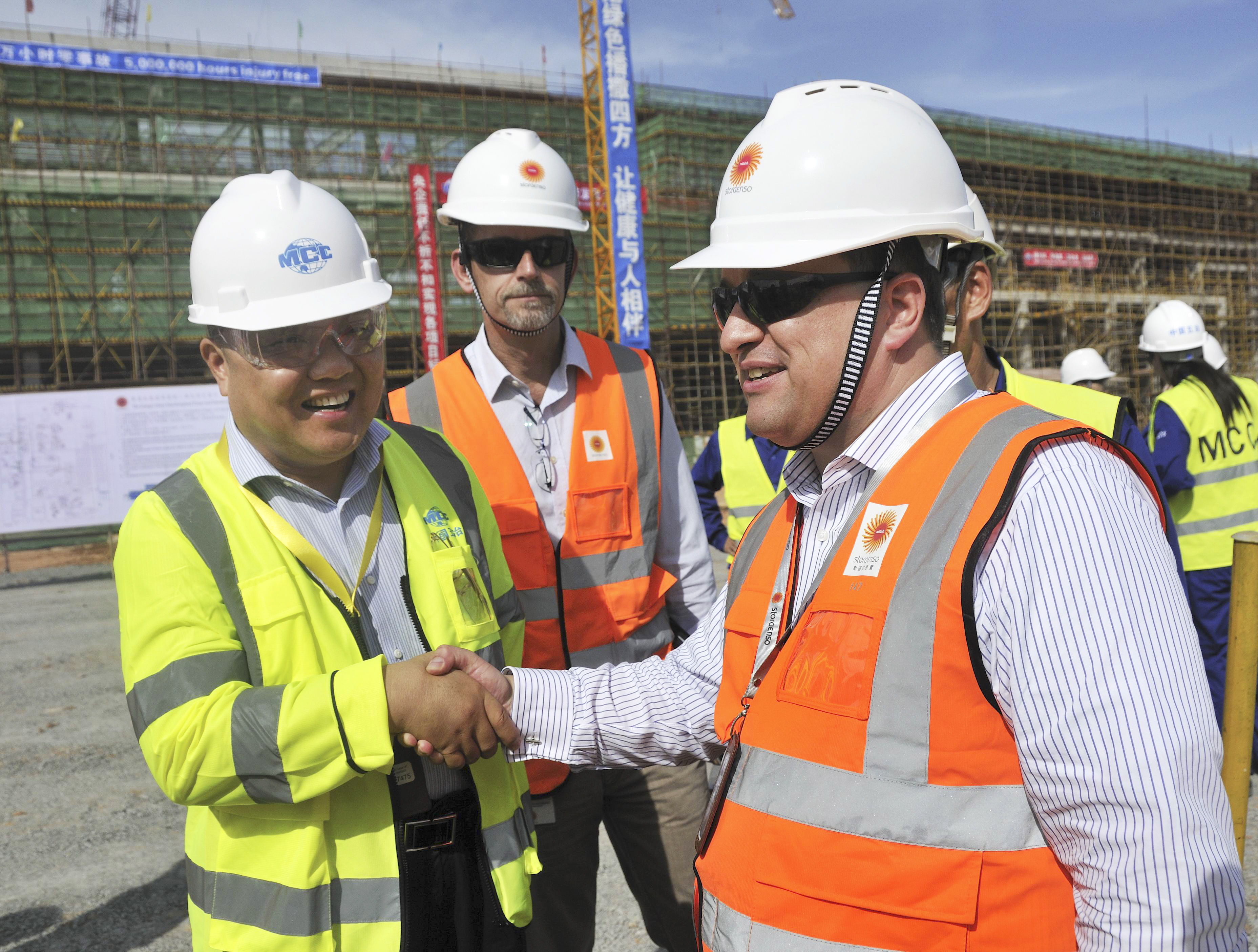 程并强与江澜剑副总裁(Rajah Jayendran)在项目现场交流