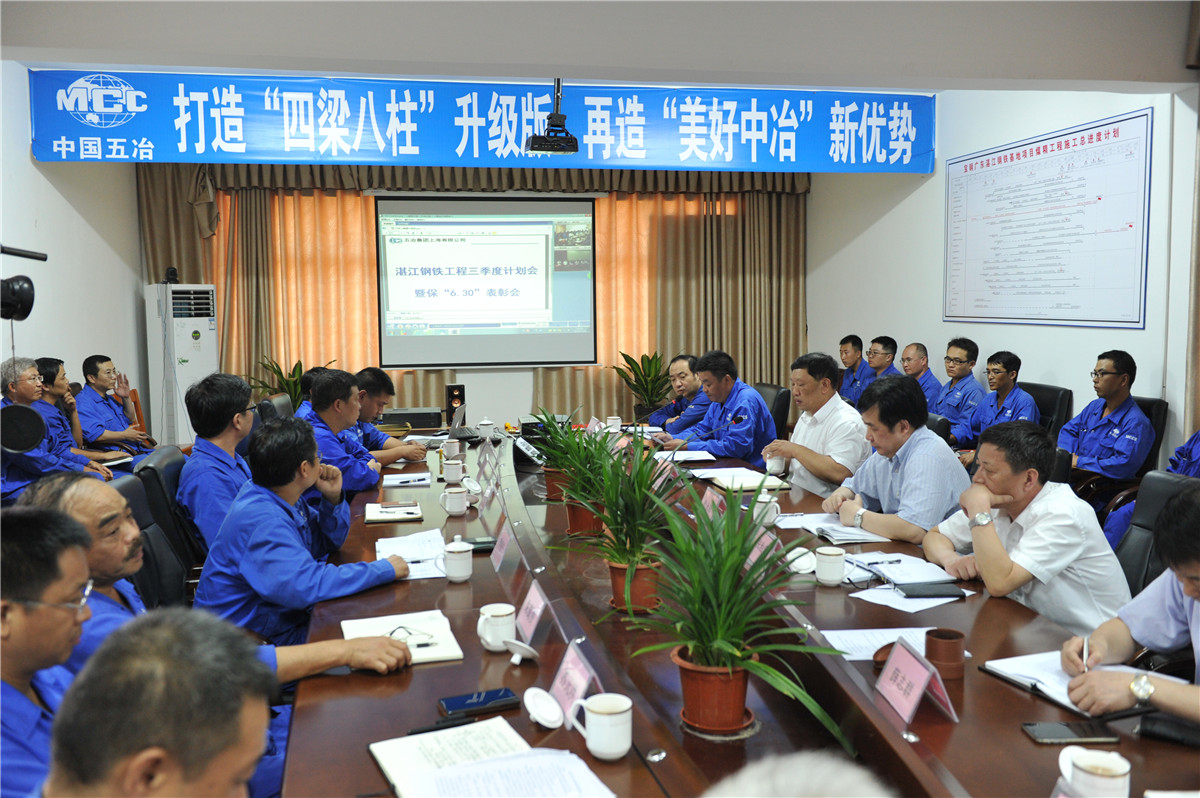 7月13日下午,湛江钢铁工程五冶分指挥部举行保“6.30”表彰会暨三季度计划会,上海有限公司领导徐永锋、倪治寿、王崇云、薛志群,有限公司机关职能部门、分指挥部领导、相关二级公司领导、指挥部部门主管、各项目经理部班子成员及受表彰的员工参加了会议。