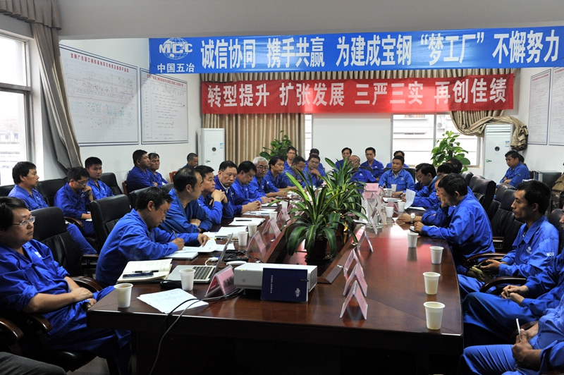 为保证各项任务的完成,动员大会要求各参战队伍、参战人员:积极做好施工准备工作,科学合理的组织施工;严肃计划、保证节点工期,计划下达不得随意变更,必须严格执行;严格考核检查,加大奖罚力度。为进一步确保各项措施到位,项目部成立了连退机组、热镀锌机组两个“前敌指挥部”,各班组、协力队伍与“前敌指挥”签订责任书,在形象进度、工期节点目标、安全目标、质量目标等方面下达了详细的指令。要求各支队伍迅速转变思路,积极做好布置,加人加班加设备,“一切行动听指挥,步调一致决胜利”!