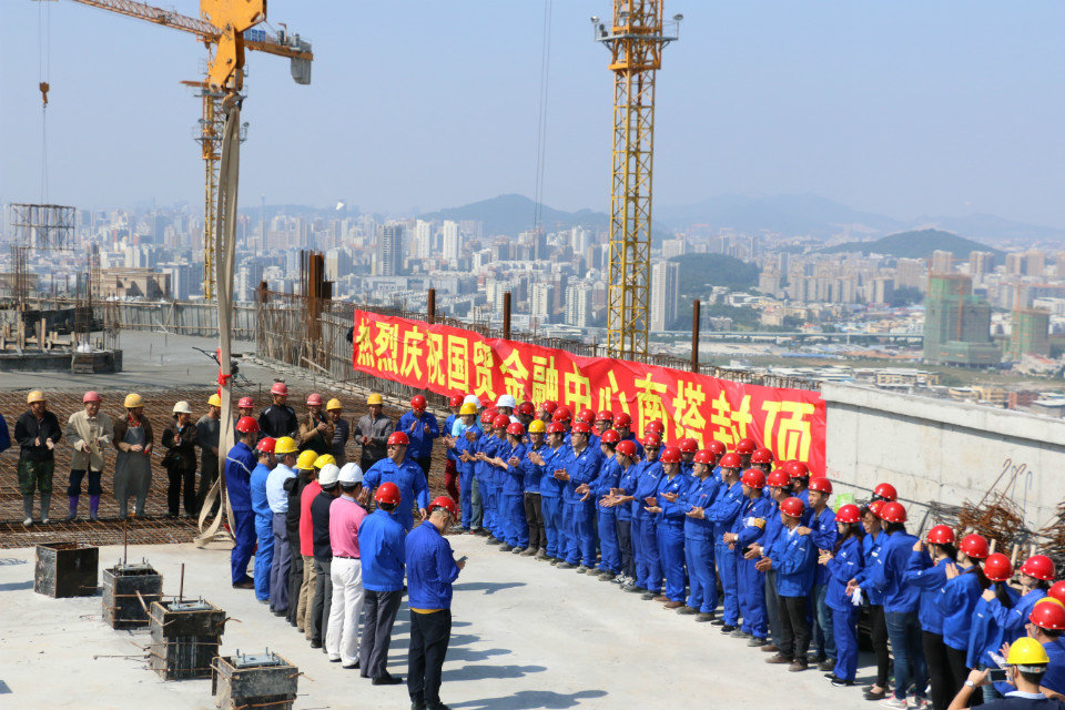 2015年10月18日10时18分,厦门国贸金融中心项目南塔楼主体结构吉庆封顶,标志着整个工程的建设已经翻开新的一页。五冶集团上海有限公司副总经理汪忠旭、三公司经理叶晓青、业主及代建单位等相关领导亲临现场参加封顶仪式。