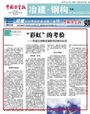 10月23日至29日,《中国冶金报》、中国冶金建设协会网、中冶上海企业党建网相继以“彩虹的考验”为题,对中国五冶迎击彩虹台风,积极投入人力物力确保湛钢项目顺利复产进行了纪实报道。