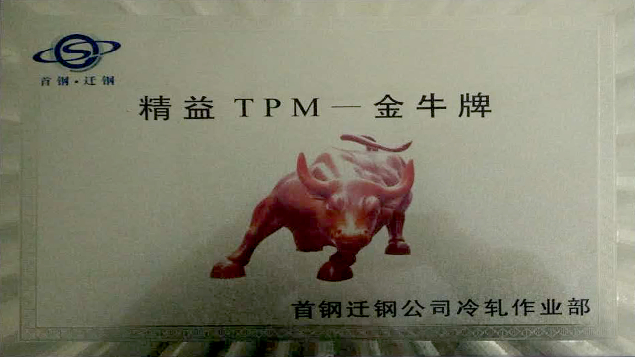 1月25日,中国五冶迁安硅钢项目部因2015年度对现场“TPM”工作开展表现突出、成绩斐然,被业主首钢迁钢公司冷轧作业部评选为2015年度优秀单位,并颁发金牛奖杯以示对五冶维护的高度认可。