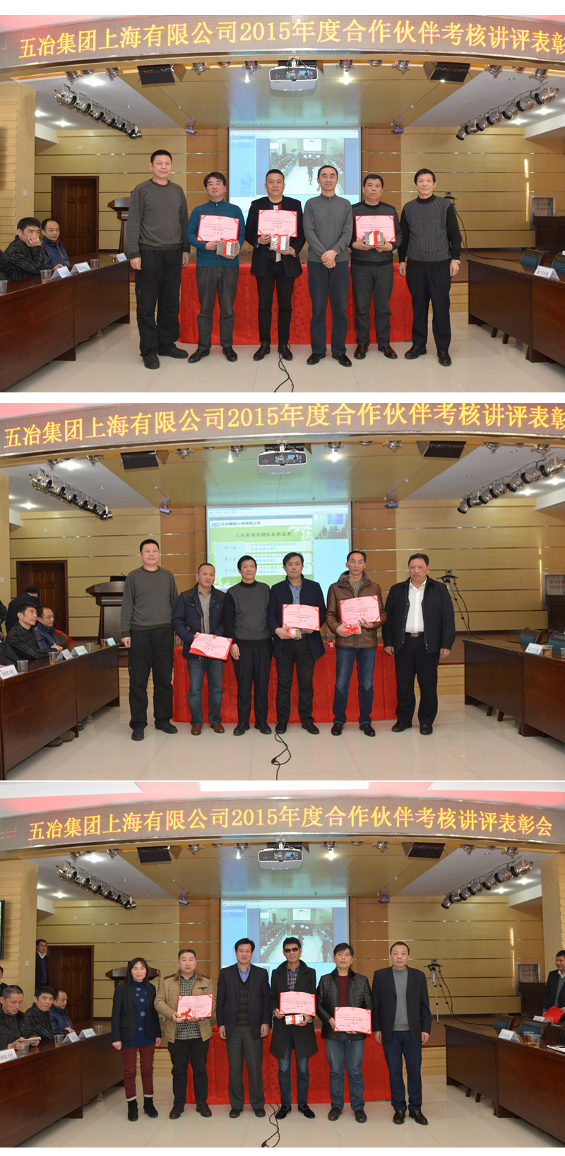 会议期间,公司对年度综合考核前三名的施工承包类合作伙伴、以及民建类和工业类合作伙伴所属项目团队进行了表彰,并现金奖励(共计81万)。2015年,两级公司机关职能部门和项目部,通过月度考核、季度考核方式从现场、进度、资源、质量、安全、经营财务管理6个维度共51个指标,对11个二级公司所属项目和2个直属项目合计302家合作伙伴履约业绩进行综合考核,指导、督促合作伙伴积极按合同诚信履约。