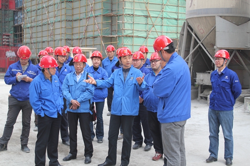 3月4日下午,中国五冶集团副总经理、上海有限公司总经理田舜一行到佘山商品住宅工程项目检查指导工作。上海有限公司总工程师尚修民、质量监督管理部经理李东川、建筑分公司经理甘兴友等陪同。