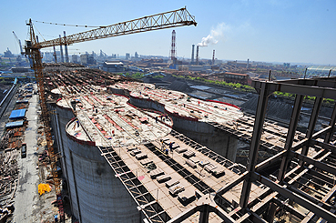 2016年4月20日,由五冶集团上海有限公司负责履约的宝钢股份煤场E-F料条改建筒仓工程进入钢结构安装阶段。目前,两个仓顶转运站钢结构安装基本结束,筒仓输入、输出系统钢结构安装正有序推进。