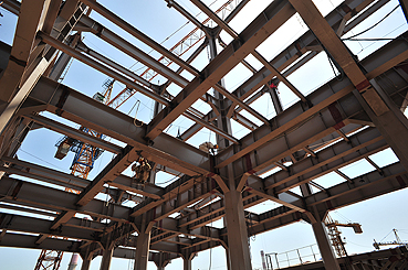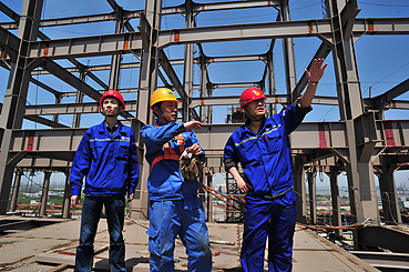 2016-04-19 宝钢煤场改建筒仓工地项目管理人员在钢结构安装现场