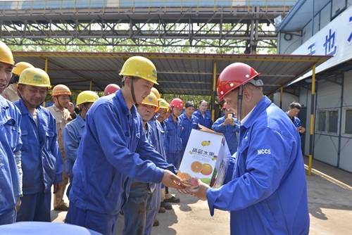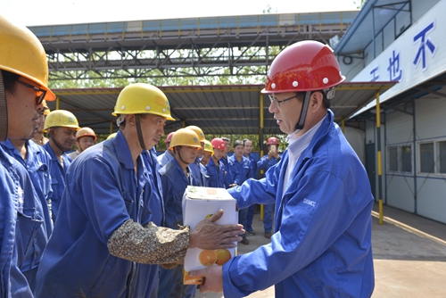 同时,受程并强董事长、田舜总经理委托,上海有限公司总会计师陈玉才、副总经理汪忠旭分别在五一期间慰问了句容安置房项目、沙特项目一线员工,为他们带去公司的关心与慰问。