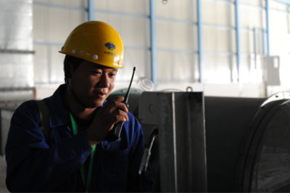 上海宝之云项目现场工施工工人正在对电气设备检修调试进行操作指挥