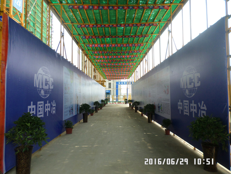 由于施工现场位于淮河边及耕地中央,项目部克服不利因素,在主干道与项目部之间修建了一条“五冶之路”。面对今年特殊雨季施工,项目部克服场地狭小及主道路狭窄等诸多不利因素,精心组织施工,合理安排进度,主动加强与设计、监理等相关单位的沟通和协调,加强策划,严格审批,狠抓落实,切实做到高标准、严要求,不留隐患、不留死角,优质高效地完成了各个工期节点的施工任务,为创建安全标准化工地奠定了坚实基础。