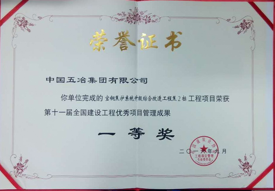 近日,从中国建筑业协会传来喜讯,第十一届全国建设工程优秀项目管理成果评选揭晓,中国五冶集团有限公司的“宝钢焦炉系统升级综合改造工程焦2标工程项目”荣获第十一届全国建设工程优秀项目管理成果一等奖。