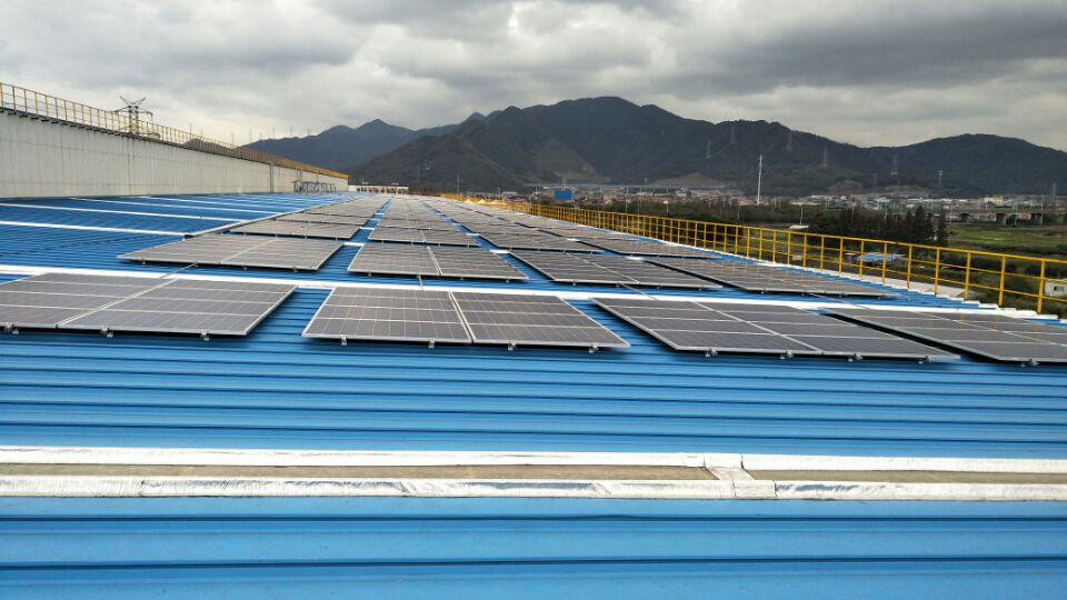 该项目位于浙江省宁波市北仑区瓯江路111号宁波宝井钢材加工配送有限公司厂房屋顶,项目总装机容量为1MW,采用分散逆变、集中并网设计。该项目所发电力消纳方式是自发自用、余电上网,光伏组件所发直流电通过逆变器逆变,经交流汇流箱送入380V母线与厂区电力系统联网。