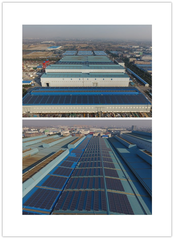 该项目位于江苏省苏州市常熟经济技术开发区高新技术产业园义虞路75号中交天和机械设备制造有限公司厂区内,本次项目规划建设总容量约为1.7604MWp,拟使用标准功率为270Wp的多晶硅组件6520块(其中:1#厂房,装机容量966.6KW,组件3580块;2#厂房,装机容量793.8KW,组件2940块)。本工程采用“分布发电,自发自用”的方式,光伏所发电量以0.4KV电压等级接入并网点配电室,供厂区负荷使用。