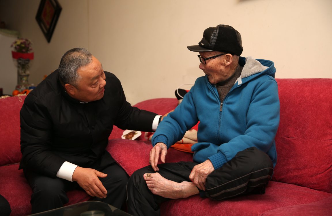 程并强看望退休百岁老工人曹金和并关心询问他因公受伤的脚趾