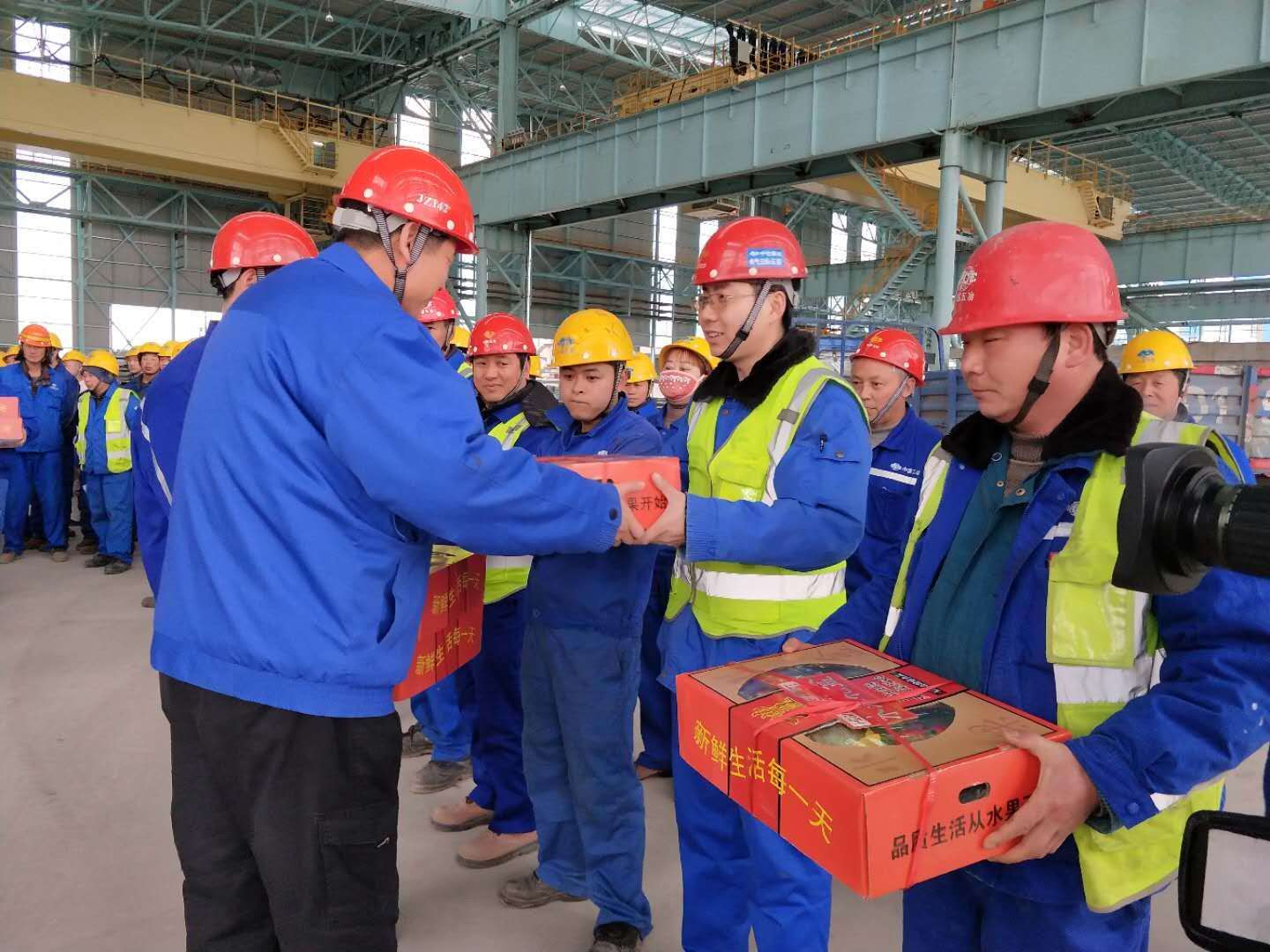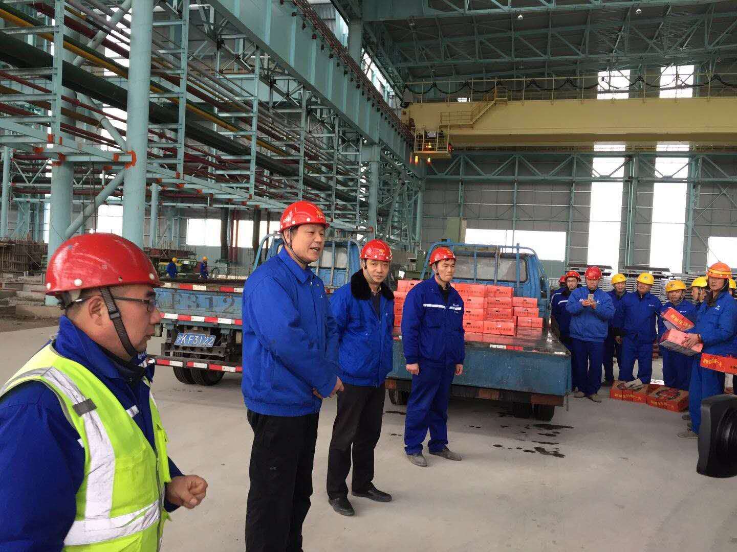 受程并强董事长委托,上午9时05分,五冶集团上海有限公司公司总工程师尚修民在薄板事业部经理陈贻的陪同下来到硅钢工地,看望、慰问加班职工。“新年好,大家辛苦了,我受中国五冶集团董事长程并强的委托来看望大家”。一句简单的祝福,尚总向加班职工送上美好的祝福。在看望慰问加班职工的活动中,尚总把一份份慰问品送到职工手上、心中。心相连,肩并肩。寒意未退,但职工的心中,分明洋溢着春的暖流、春的希望……