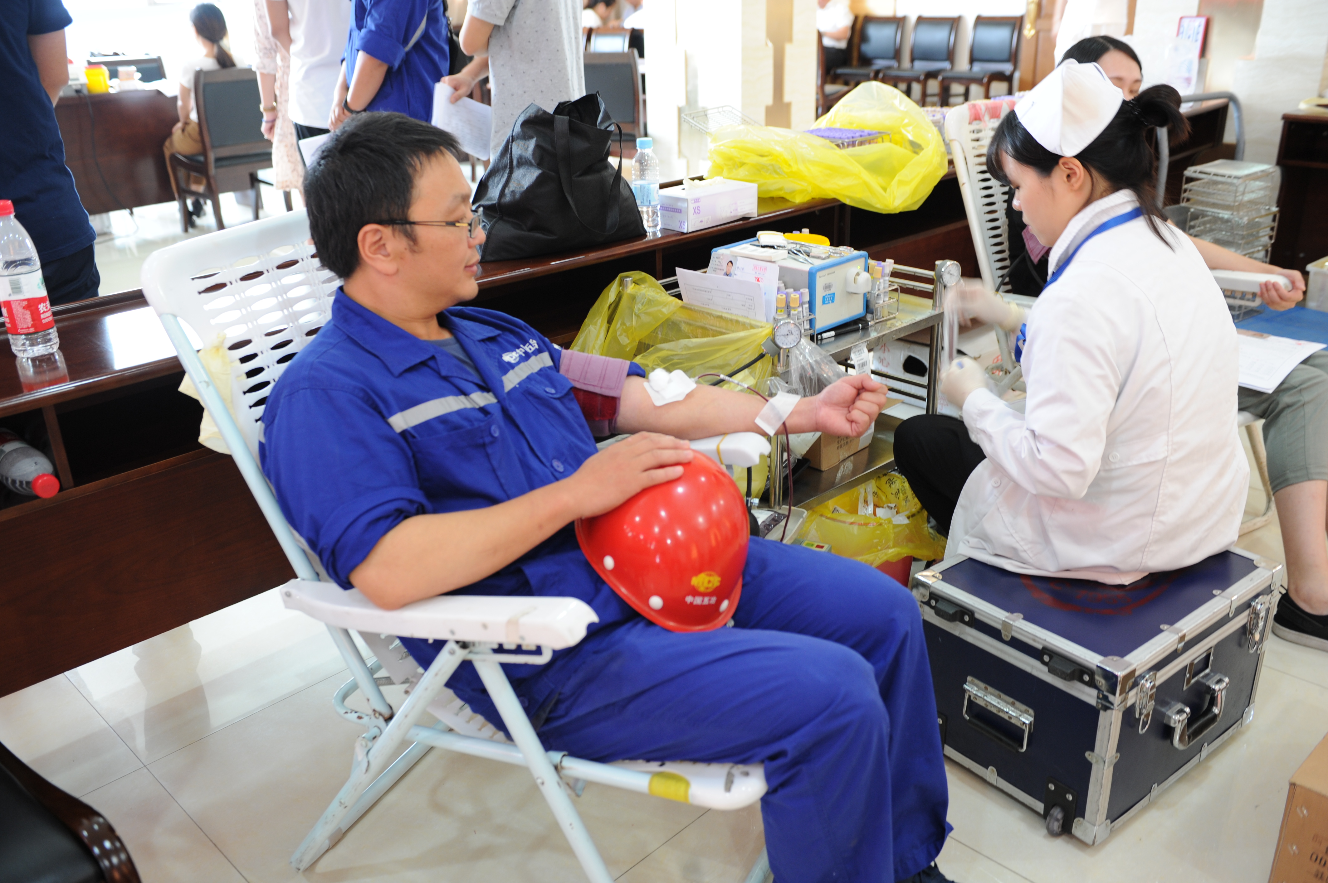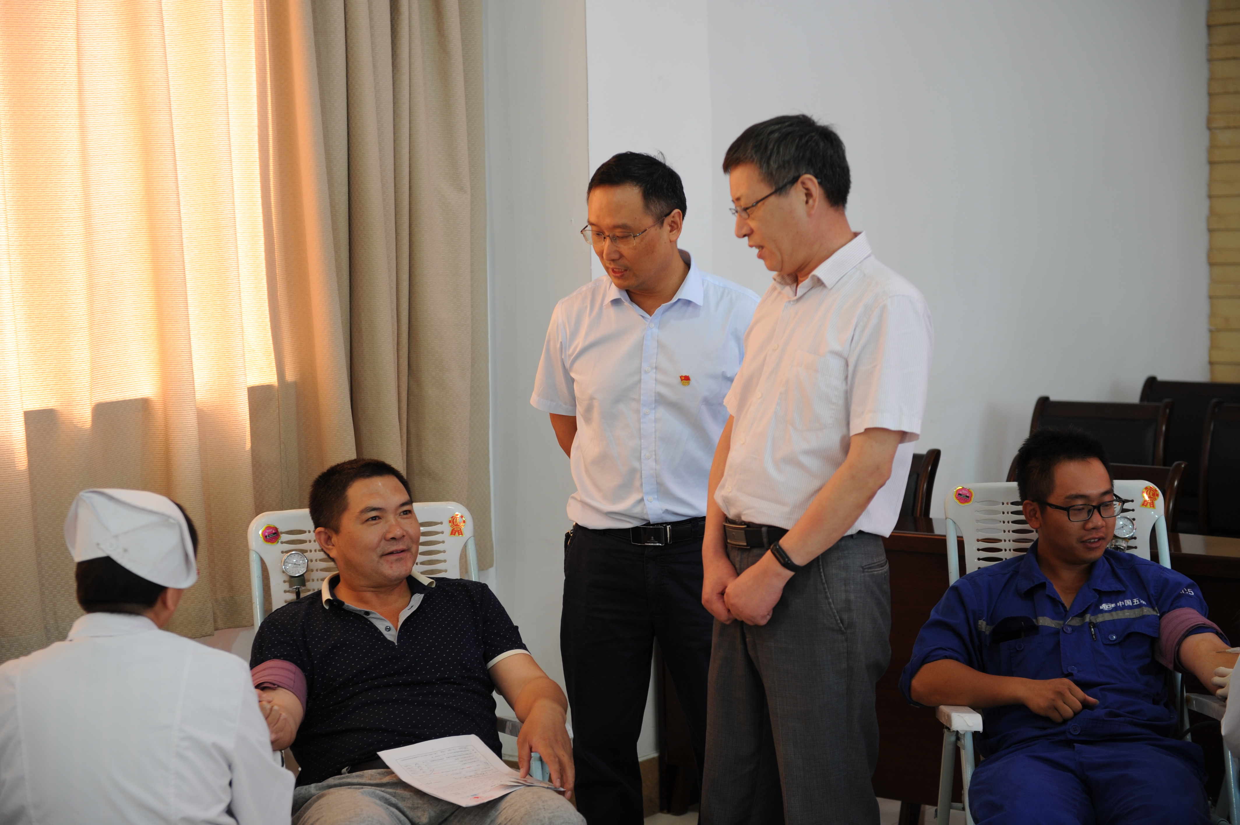 有限公司党委副书记、副总经理倪治寿在综合事务部经理邱波的陪同下亲临现场看望献血员工,关切地询问大家的身体情况,叮嘱大家回去后注意休息、调理好身体。各二级公司分管领导也纷纷到达现场,充分体现了对本单位献血工作的高度重视。