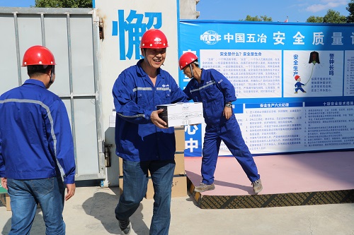 盛世华诞,举国欢庆。为确保项目建设进度,嘉定项目广大建设者依然奋战一线。10月3日,五冶集团上海有限公司总工程师尚修民莅临嘉定项目,对奋战在一线的员工带来节日慰问品,并祝福大家国庆节快乐。
