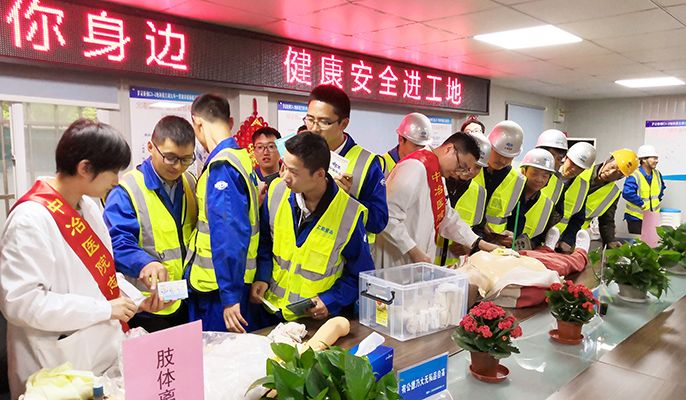 4月28日上午,中国十九冶职工医院组织多名医护人员到攀枝花火车南站项目部,开展了以“健康关爱送工地 安全生产促发展”为主题的企业开放日宣传活动,向辛勤工作的“西部铁军”战士们表示致敬。活动中,针对工地上可能发生的突发情况,医护人员以PPT和假人演示的形式讲解了心肺复苏、四肢及脊柱骨折固定、外伤包扎及处理以及炎热夏季防中暑等知识;现场为数十名员工测量血糖、血压,进行糖尿病及高血压的筛查和健康咨询服务;发放健康知识手册及宣传单100余份,并送去一批防中暑药品。本次企业开放日宣传活动,收到了政府部门及工会系统相关领导、社会公众代表与主流媒体的好评,项目部全体员工表示要将公司对一线员工的关爱化作动力,努力完成各项施工任务,确保项目优质高效完成。