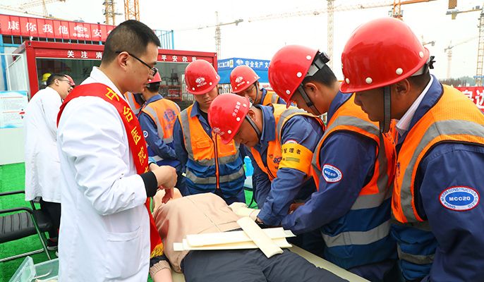 4月30日,中国二十二冶组织十余名医护人员走进五矿曹妃甸国家矿石交易中心项目和曹妃甸装备制造基地生产车间,开展以“关爱农民工兄弟之‘五一’送健康到工地”为主题的企业开放日宣传活动。中国二十二冶医院外科、内科医务人员分别以《现场意外受伤后的处置》、《突发疾病现场急救措施》为题进行了健康知识讲座,示范讲解了在工地突发外伤后止血、包扎、固定、搬运的简单方法和注意事项,突发心脑血管疾病的紧急判断和院前急救,并手把手教会大家心肺复苏治疗法。中国二十二冶金结公司安全环保部负责人结合工地和生产车间实际情况,开展了工地健康安全防范培训。医务人员热情地为农民工们诊疗,耐心地回答农民工们咨询的各类健康问题。活动受到了工会领导及广大农民工兄弟的一致好评。市总工会宣教部部长陈冬宁表示,在“五一”国国际劳动节期间,中冶集团组织开展“五一”送健康到工地主题企业开放日宣传活动,关心关心关爱劳动者,进一步激发和调动了广大职工的积极性,让建筑工地的农民工兄弟们不用耽误工时就能享受到医院专家的免费诊治,值得我们敬佩和学习!