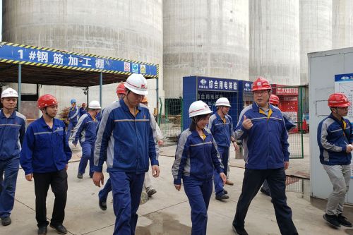 魏尧一行深入马钢筒仓项目施工现场,实地查看了工程进度、质量、安全文明施工等情况,听取了马钢筒仓项目部经理姚书强就项目整体进展情况、施工工艺、工程特点难点、安全措施落实情况、高温季节防暑降温措施落实情况以及防汛排涝应急准备情况的汇报。魏尧对项目部的辛勤工作以及项目进展给予了充分肯定,他指出,筒仓项目作为当前马钢重点工程,是马钢坚持生态优先、践行绿色发展的具体体现,环保意义、安全责任同样重大。他强调,在项目推进工程中,必须牢固树立安全生产第一理念,努力实现违章、隐患、事故三个为零目标,坚持预防为主、科学施工、合理组织,织牢织密安全保障网络,确保工程项目善始善终、善作善成。在项目现场,魏尧慰问了正在工作项目一线员工,对他们在高温时节坚守岗位、吃得起苦、敢于挑战的的精神给予了充分肯定和由衷敬意。
