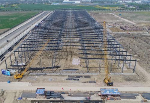 新建斯凯奇物流中心项目分拣中心钢结构工程位于江苏省太仓市浮桥镇太仓港区,总建筑面积为15.58万㎡。项目主要建设内容为:物流仓库、分拣中心、办公楼、辅助用房和门卫室等。其中,分拣中心作为新建斯凯奇物流中心项目的核心建筑,吊装难度大,安装精度要求高。项目部通过精心组织、科学施工,在吊装过程中严格把控施工质量,现主次结构已安装完成并验收通过,施工质量得到各参建单位的一致好评。