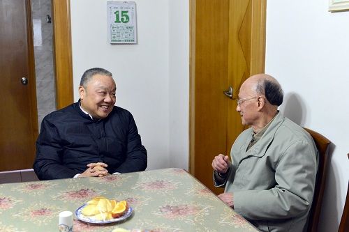 程并强一行首先来到位于宝山区东林路的老领导丁世昌家。丁老是1981年上海市劳模、1982年全国基建部劳模、1984年四川省劳模,享受政府特殊津贴。程并强与丁老促膝相谈,他表示五冶今天的发展离不开老领导、老前辈的贡献,对丁老等公司老领导对企业发展作出的贡献表示感谢,在新春来临之际,祝丁老身体健康,阖家欢乐。