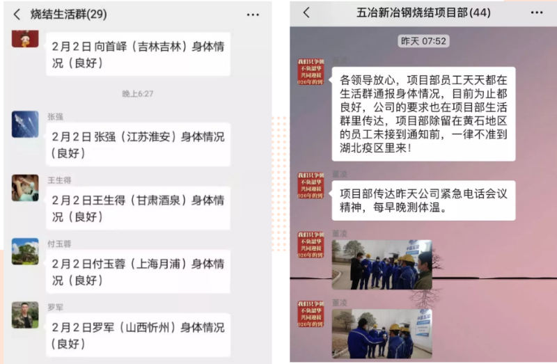 “说不怕是假的,但既然选择留下,就必须风雨兼程!”90后党员信鑫是湖北新冶钢烧结项目部的总工程师,这个春节他主动要求留在项目部值班,每天上岗前他都鼓起勇气站在工人师傅面前宣讲,给大伙儿做心理疏导。“信鑫!你给了我们信心!我们不会让你孤军奋战!”他的这个劲头,影响着项目部的驻守人员们。