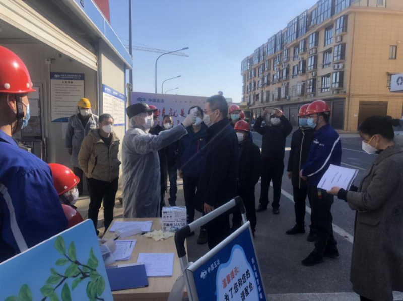在进入项目现场之前,所有人员都根据项目部防疫应急管理条例要求进行了实名登记和体温测量,在确认所有人安全健康的情况下,董智频一行进入金西地块进行了复工检查。在项目现场,董智频对项目部疫情防控和复工准备工作予以充分肯定,并对项目部疫情防控工作提出了三点要求:一是要建立返回项目人员登记花名册,高风险地区人员要暂缓返回项目,低风险地区人员可有序返回项目部,要切实做好隔离措施,做到合理管控;二是要加强疫情防护知识的科普宣传,引导全体管理人员和施工作业人员做到不信谣、不传谣、不恐慌;三是金华市政府为促进企业复工复产、降低企业员工返岗成本,制定了一系列优惠政策,如包车接送外地员工可享受政府补贴,项目部在做好施工作业人员有序返岗工作的同时,要利用好复工复产的好政策。