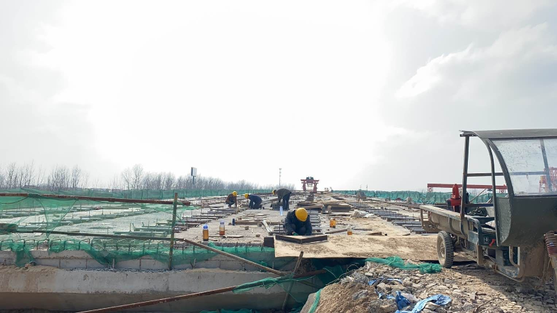 在项目部疫情防控小组的指挥下,全体管理人员和施工作业人员严格执行各项防疫保护措施,积极投身到生产建设中去。目前东海大道桥梁标正在进行跨G15大桥桥面及10、11号墩柱盖梁施工,北八滩桥以及盘洋桥也在同步施工。与此同时,外海堤公路的桥梁建设也全面展开,南八滩桥一号桥墩挂篮钢模加工,墩身钢筋绑扎已经完成百分之五十,二号墩墩身钢模拆除,0号块钢筋加工正在进行,行车道板C30砼浇筑累计完成220片。
