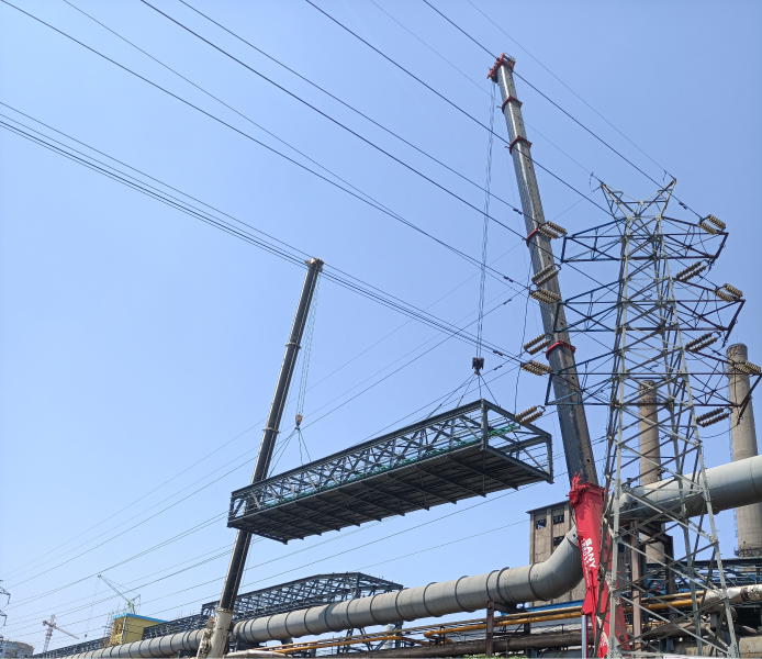 要实现通廊钢结构吊装,就必须要解决煤气管道和双回路110千伏高压电线的问题。一方面,需要跨越高炉煤气管道最高处近21米,又不触碰另一侧的双回路110千伏高压电线。另一方面,高炉煤气管道、双回路110千伏高压电线都是该城市的重要设施,一旦停气、停电,就会影响该城市的居民生活,后果不堪设想。